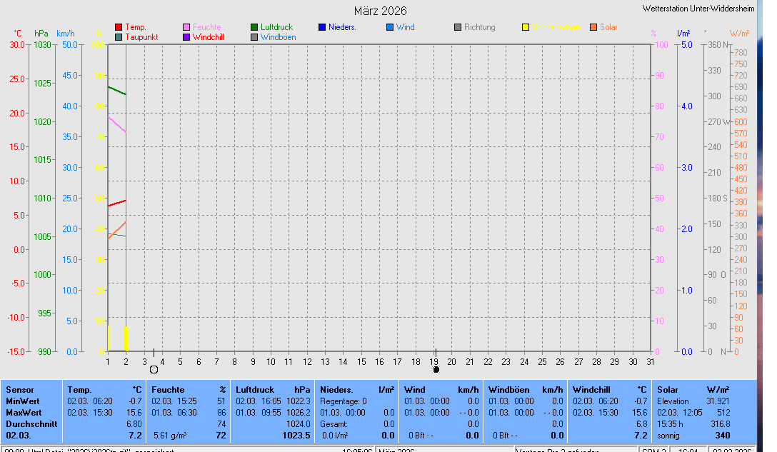 | Windchill | aktuell 15,3 °C |